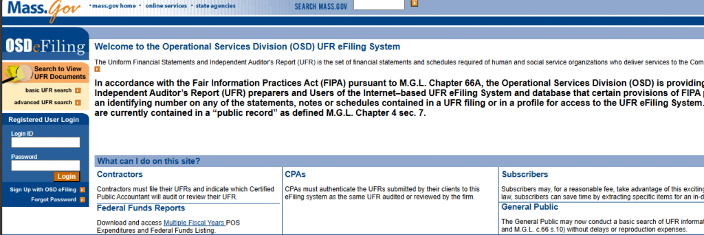 The Massachusetts Operational Services Division (OSD) and funding agencies use the UFR to review whether contracts have been billed correctly and if an organization has generated excessive surpluses. Additionally, the UFR process helps identify potential compliance issues in contract activities.